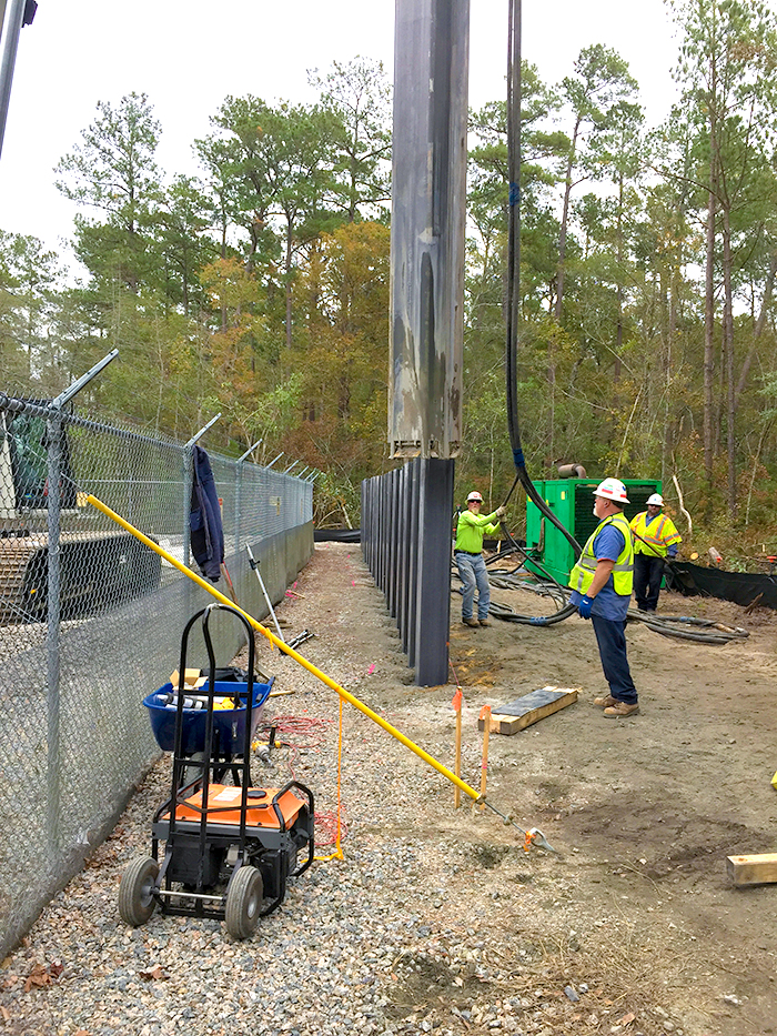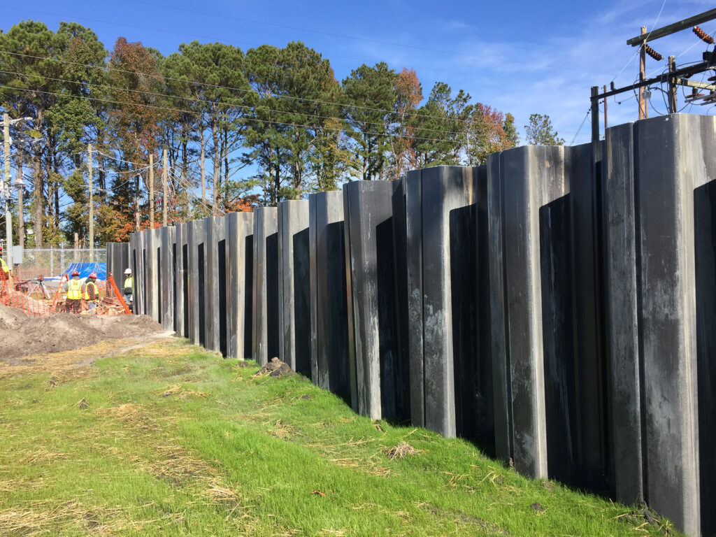 UltraComposite™ 75 Sheet Piling, manufactured by Strongwell, was sourced for several separate substation sites along the coastline of North Carolina. With aggressive project schedules, UC-75 was deemed far superior to steel or concrete in life cycle analyses, non-conductivity, sustainability, and total cost of ownership. At each substation site, sheet piling provided wall lengths ranging from 600 to 1,900 linear feet. Wall heights varied from six to eight feet above grade with tight spacing requirements around each substation.
